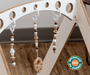 Le gym pour bébés vient d’une vieille demande client qu’on a dépoussiérée, et même, sortie des boules à mites quand on a décidé de créer la ligne pour enfants. On voulait un objet qui se donne bien en cadeau, mais aussi, assez durable pour le prêter à toute la famille ou à sa gang d’amis. Côté finition, on a ajouté notre touche personnelle avec l’arc troué, qui le rend plus unique qu’une simple barre en bois.