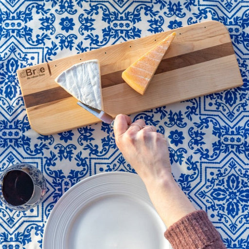Planche de service pour les fromages. Munie d'une encoche pour tenir le couteau, et de petits trous pour planter les identificateurs de fromages s...
