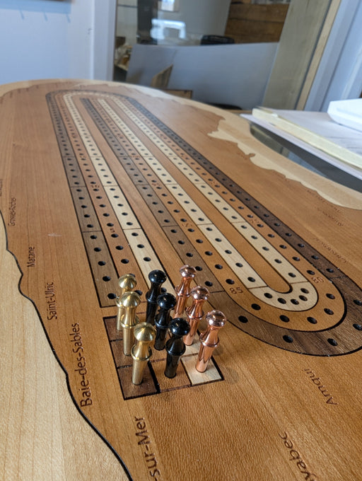 Planches de Crib en Bois - Carte de la Gaspésie Gravée Ajoutez une touche unique à vos soirées jeux avec notre planche de crib en bois, taillée en ...